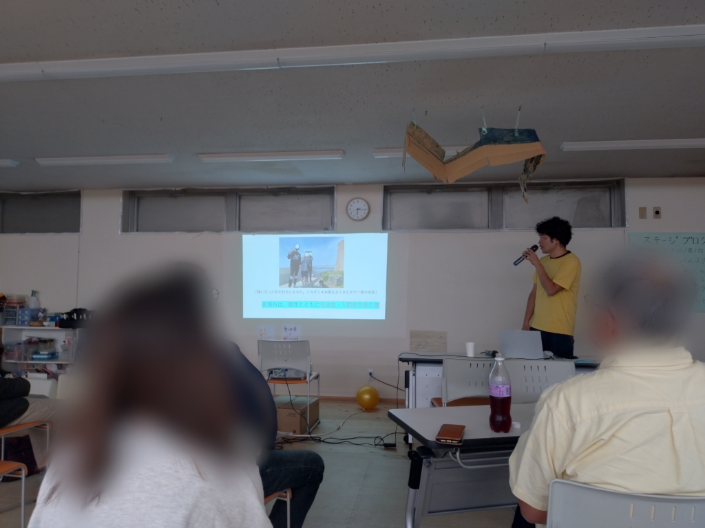 特に胸を打たれたのは、かけはし卒業生による居場所づくり「リスポーン」の設立と、その活動報告です。もじゃ君こと廣瀬貴樹さんをはじめ、卒業生たちが、かけはしでの経験を活かし、生き生きと地域で活躍している姿に、本当に感動しました!(以下は熱のこもったプレゼンテーションの様子です!)