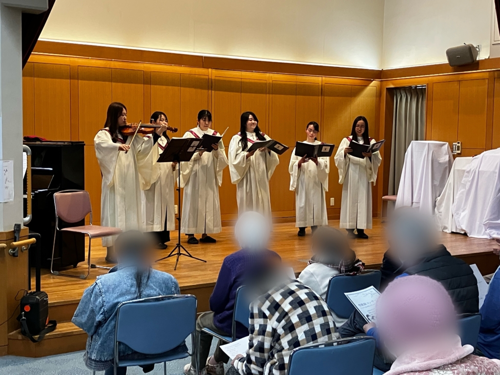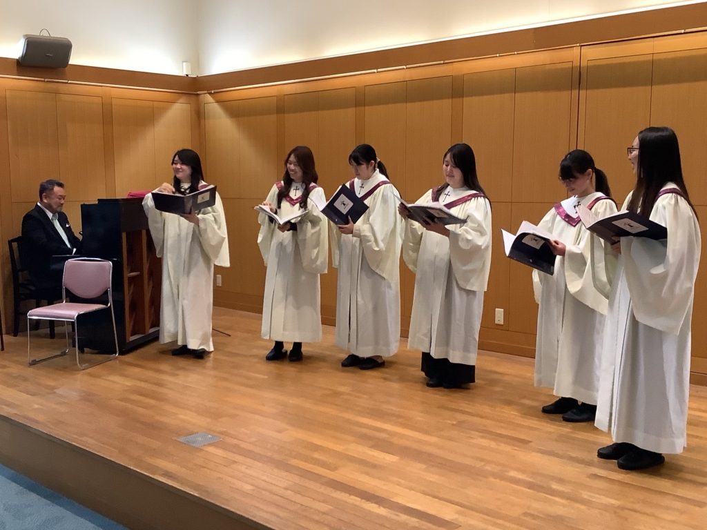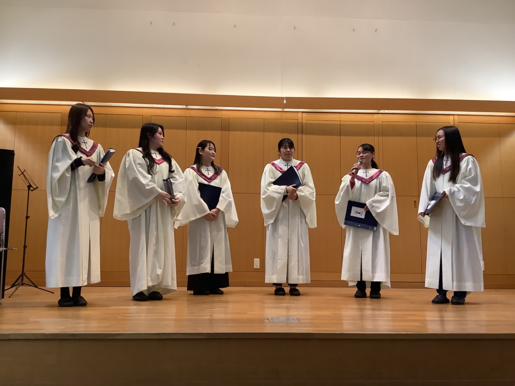 「Amazing Grace」や「いつくしみ深き」では、「この歌詞だけでキリスト教音楽の魅力が伝えられると感じた」という学生の説明のとおり、一つ一つの言葉を大切にした歌声が会場に静かに響き渡りました。