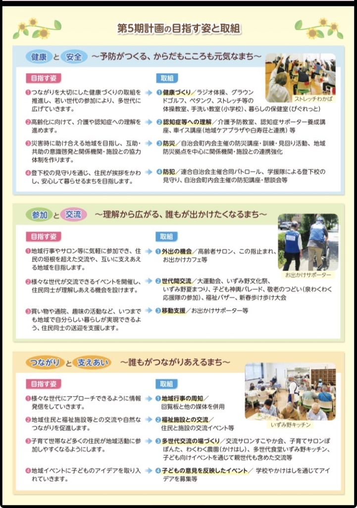 このたび、泉区が推進している「泉わくわくプラン(第5期和泉北部地区 地域福祉保健計画)」に、当施設で実施している「いずみ野地域ケアプラザとの連携」の取り組みを、掲載していただきましたのでご案内いたします。