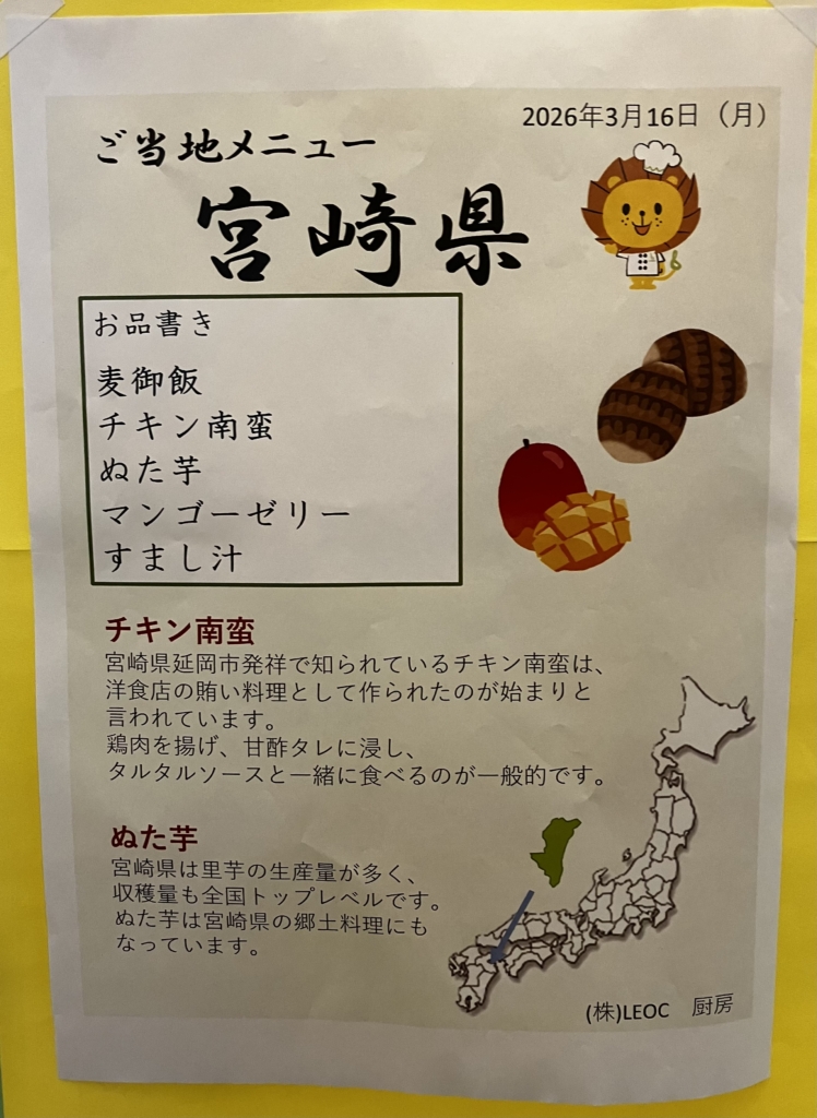 本日3月16日のランチは、南国情緒あふれる「宮崎県」の特集でした!