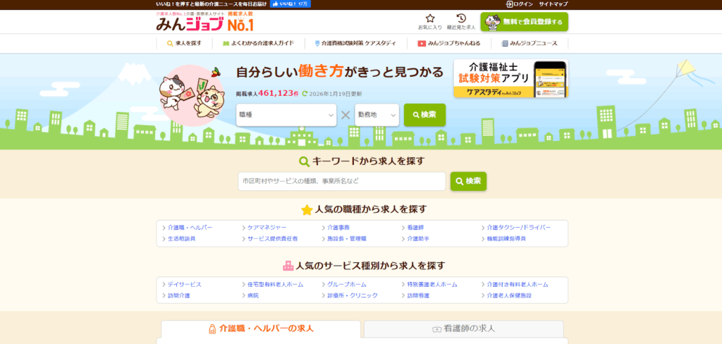 より多くの求人から自分に合った職場を選びたい場合「みんジョブ」と「ジョブメドレー」がおすすめです。