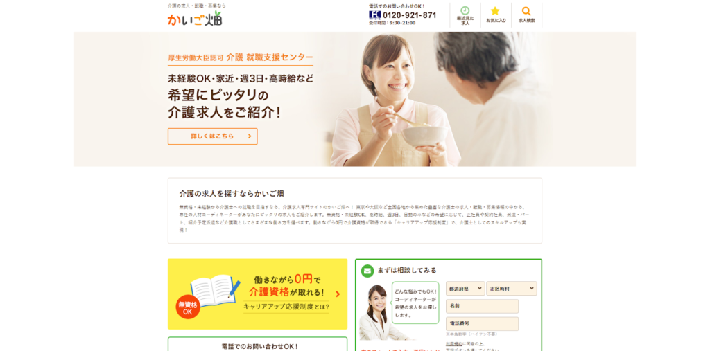 サポートが手厚い「カイゴジョブエージェント」