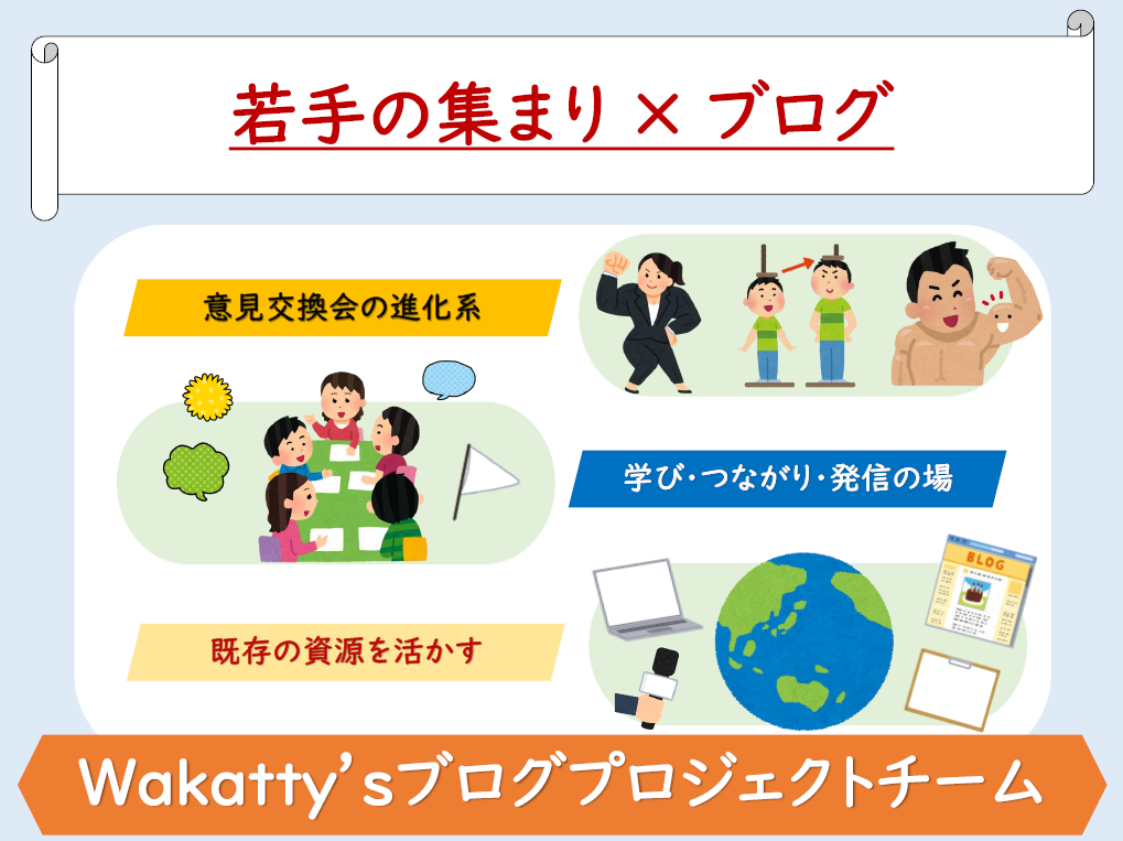 そこで、若手の集まりを再構成する新たな取り組みとして、『Wakatty’s ブログプロジェクトチーム』を提案しました。