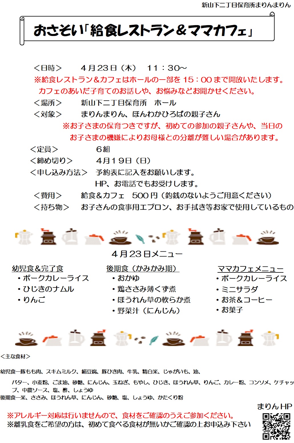※園行事等の状況により変更、休止の可能性があります。変更の場合、決まり次第HPや園庭にてお知らせいたします。