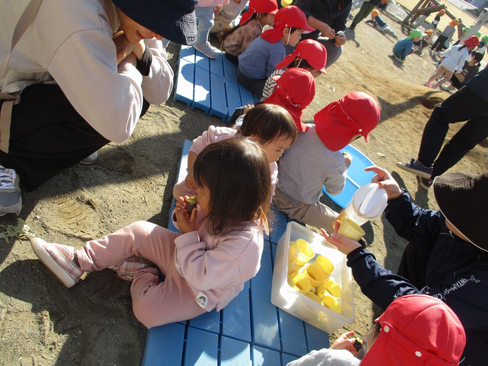 大きな園庭ででみんな美味しそうに食べてます。中にはおかわりする子もいたほどでした♪秋の味覚を堪能しました♬