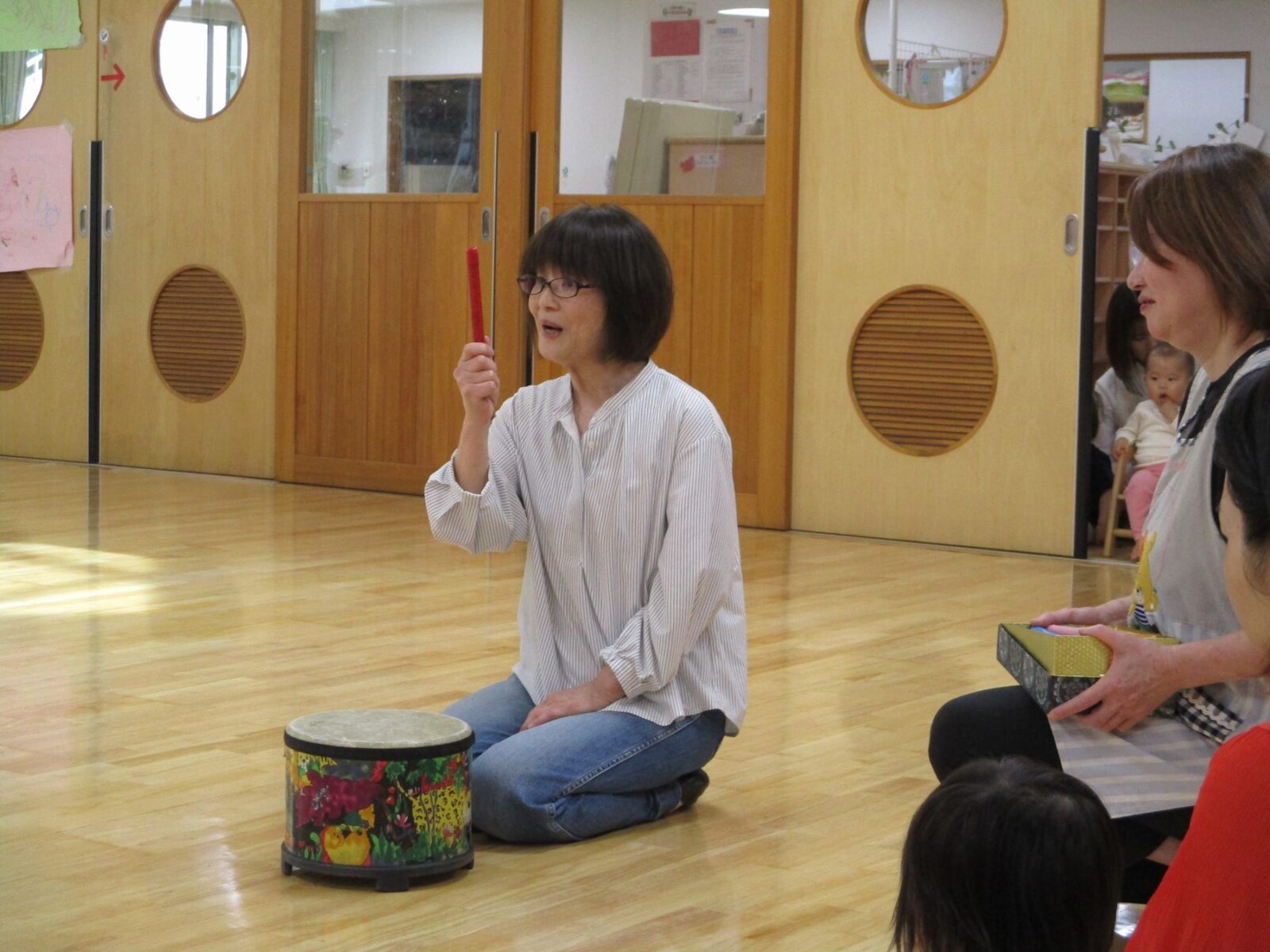 こちらは毎回好評のリトミック遊び。リズムに合わせて踊ったり、楽器を叩いたりみんな楽しそうですね♪
