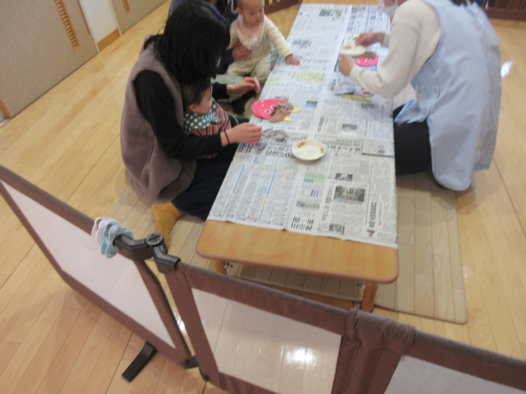 もうすぐ節分。今日はみんなで鬼のお面づくりを楽しみました。
