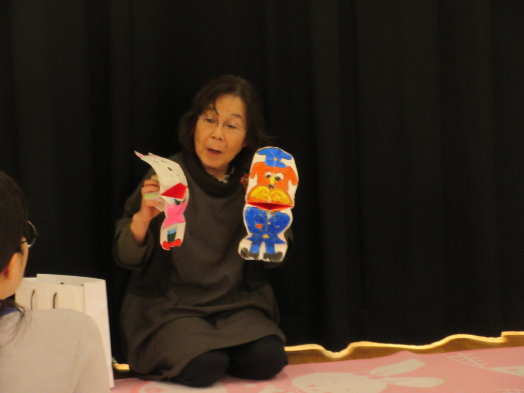 手作りの人形を使って、猫のお嬢さんとのやりとりをわかりやすく、楽しく紹介してくれました。