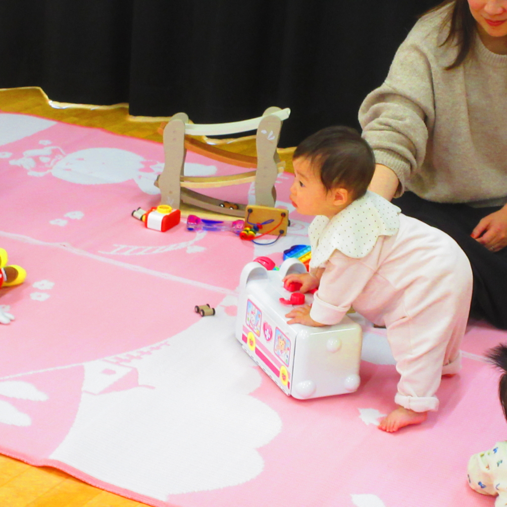 小さなお手てでおもちゃをぎゅっと握り、足にぐっと力を入れて、「つかまり立ち」に成功しました👏👏