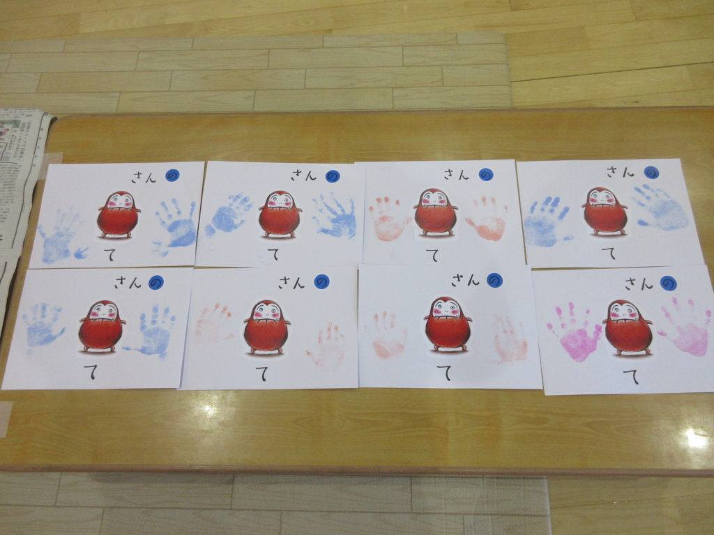並んだ手形の横では、だるまさんも一緒に笑っているみたい。