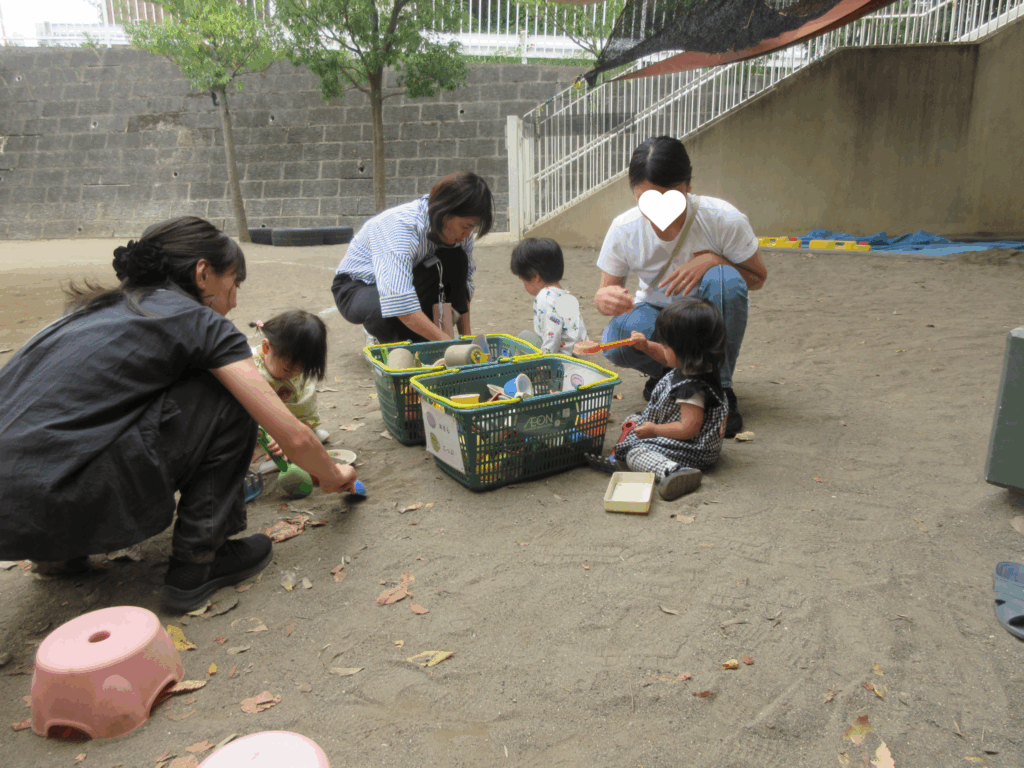 そのあとは、砂場でのんびり遊びタイム。ママと一緒にカップにお砂を入れたり、山を作ったり…夢中になって遊びました。お外で過ごす時間って、やっぱり最高!