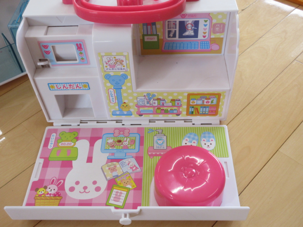 病院セットやベビーカーでにこにこ楽しそう♪