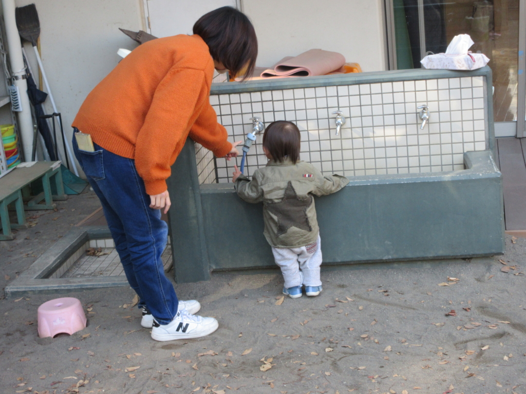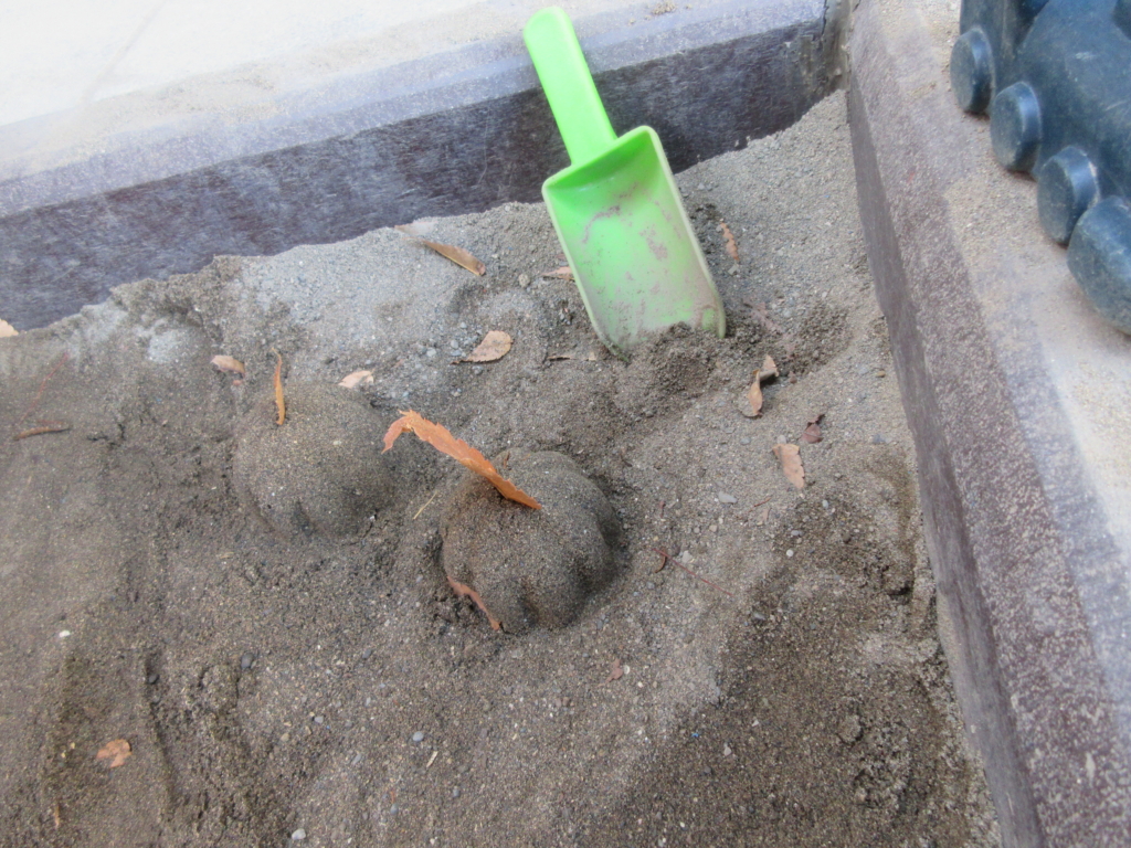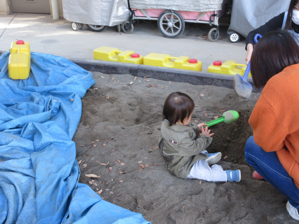 つぎは砂あそびのじかん。腰をおろして、ほじほじ🪣