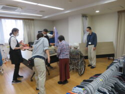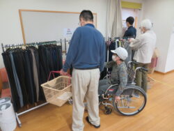 みんさま、こんにちは。10月29日に衣類訪問販売を行いました。寒い時期入る前に、冬秋の衣類を購入頂いておりまして、利用者のみんなも大喜びでした。