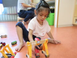 すずめ組の最近のブームはブロック遊びと木製の線路で遊ぶことです!!
