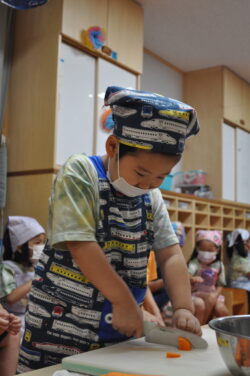 つばめ組のお友だちは夕涼み会でカレー作りやゲーム、花火を楽しみました!