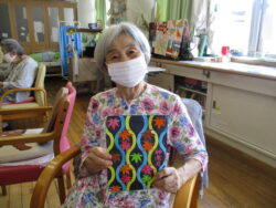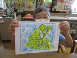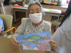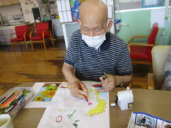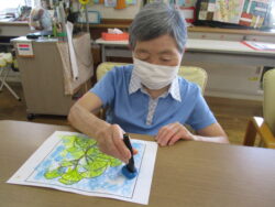 顔彩絵具や色鉛筆を使った塗り絵作業は