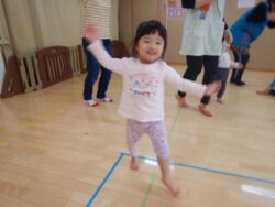 練習の様子を見学していた0,1歳児クラスの子どもたちもダンスを真似したり、玉入れに興味を持っていたので、