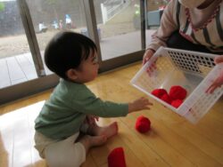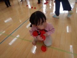 幼児さんのように高い所には入れるのは難しいので、先生が持っているカゴにみんなで玉を集めました💨