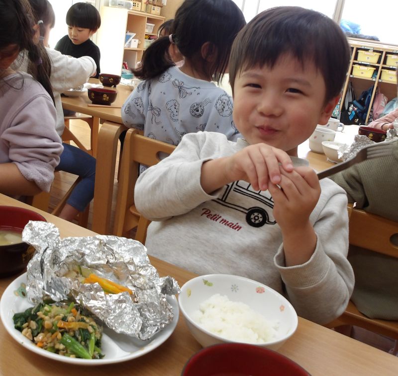 子どもたちは、自然に「お願いします!」と、調理の先生に話していました♪♬