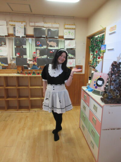 いつもの先生がかわいい姿で食事をお届けしましたよ!