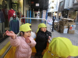 上を見上げて、「サンタさんなにしてるのかな?」と興味津々の子どもたちでした。
