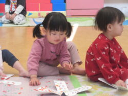 ひよこ組は牛乳パックにシールを貼ってコマを作りました😊みんな一生懸命回そうとする姿がとても可愛かったです!!