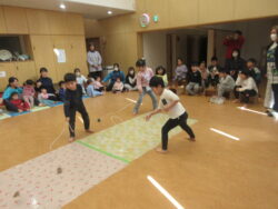 はと組さんは投げゴマに挑戦!!練習の時より少しずつ巻くのも上手になり、投げゴマの難しさを感じながらもとても楽しそうでした✨