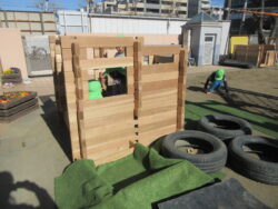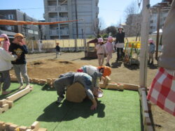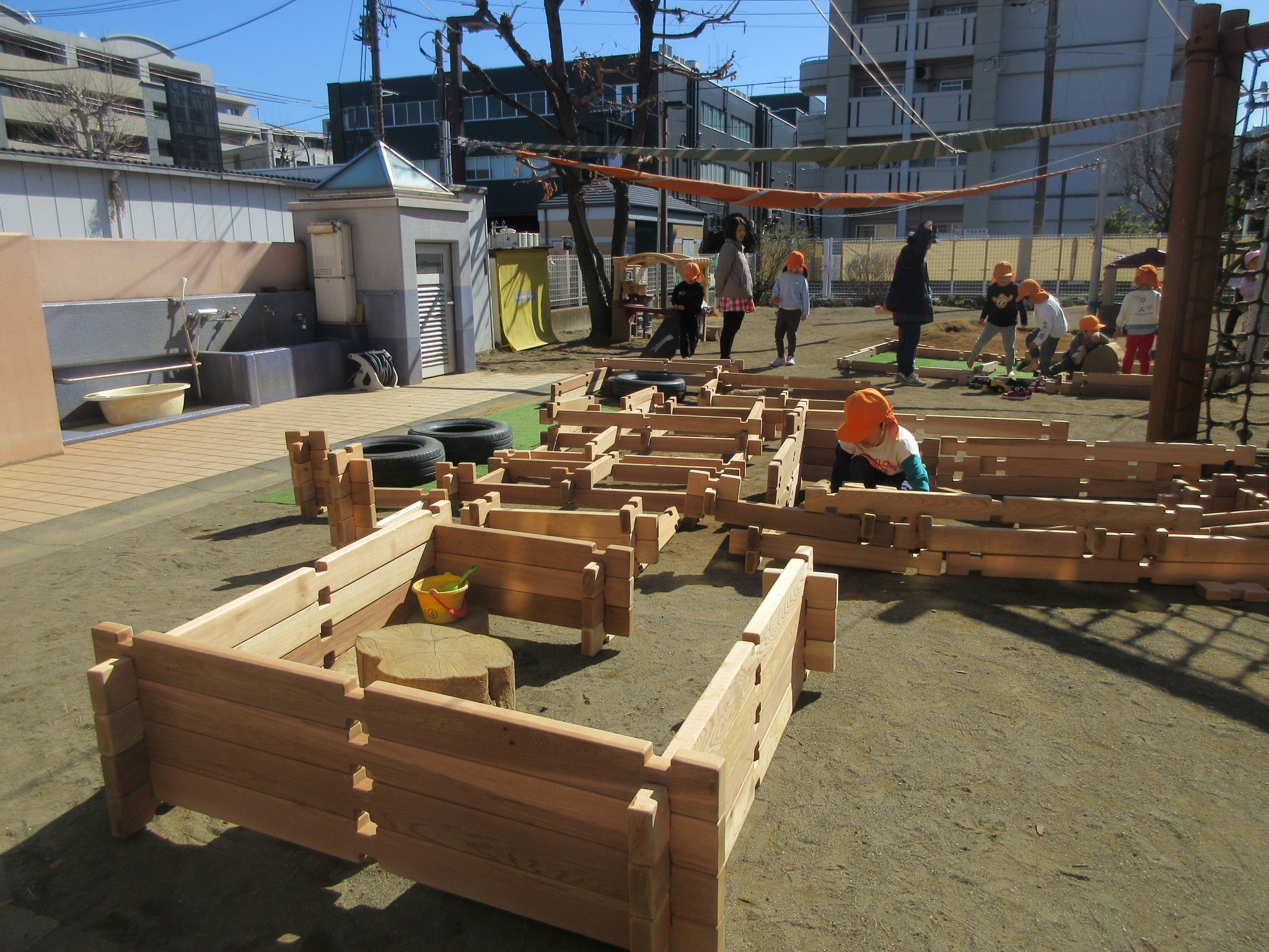 本日は4歳児が園庭一番乗りで建築開始!