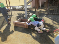 5歳児は何でも協力し合って。押して移動!